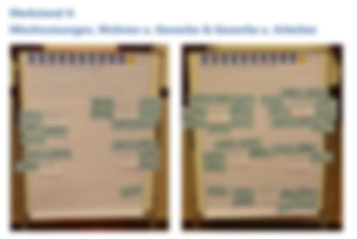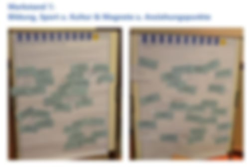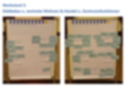 Die Teilnehmer konnten frei zwischen den verschiedenen Marktständen wechseln. Grundlage der Diskussion waren die bisher eingegangenen Ideen für das jeweilige Themenfeld. Neue Ideen und Anregungen wurden ergänzt.